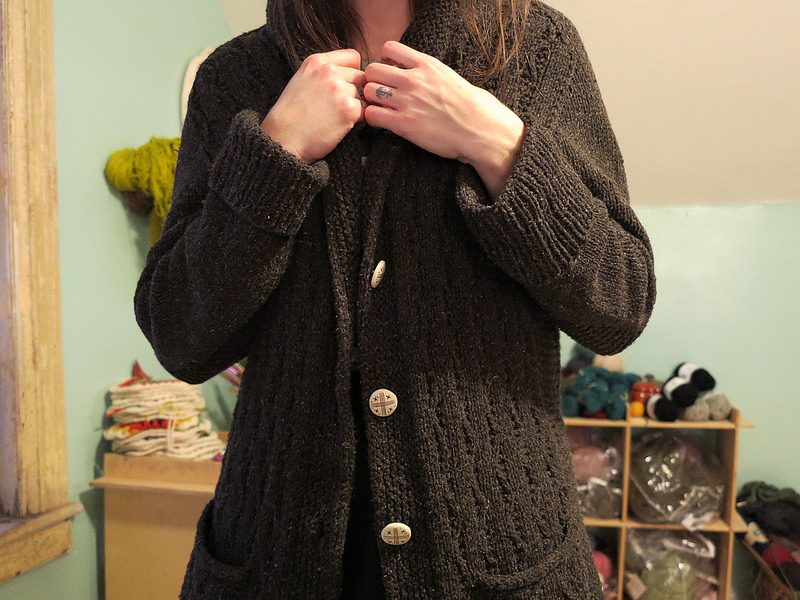 I could see knitting this again in a smaller size, for a more structured-looking garment, but I’m really pleased with the slouchy fit this time around. Seeing the project gallery on Ravelry,  I also have to say I love how the stitch pattern looks in lighter neutrals, so there is very likely another Little Wave in my future. Good thing I loved the process of knitting this!